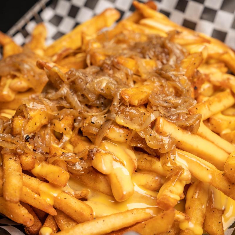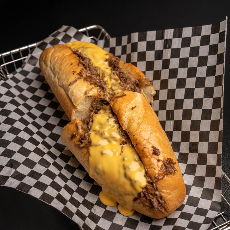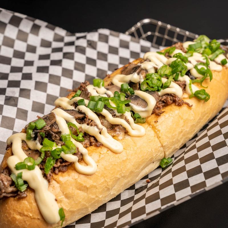 Thinly sliced steak blend, caramelized onions, cheese whiz, beer cheese sauce, green onions