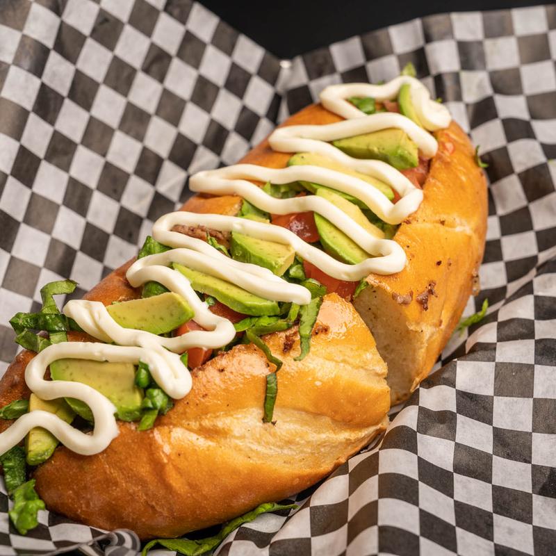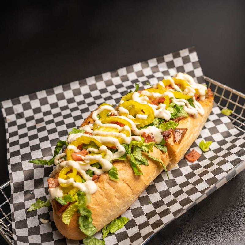 Pickled jalapeños, cilantro, peppers, lettuce, tomato, avocado, white American, chipotle mayonnaise