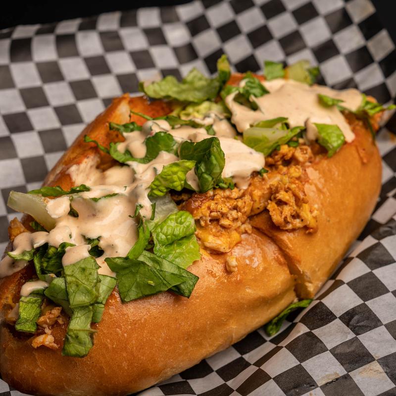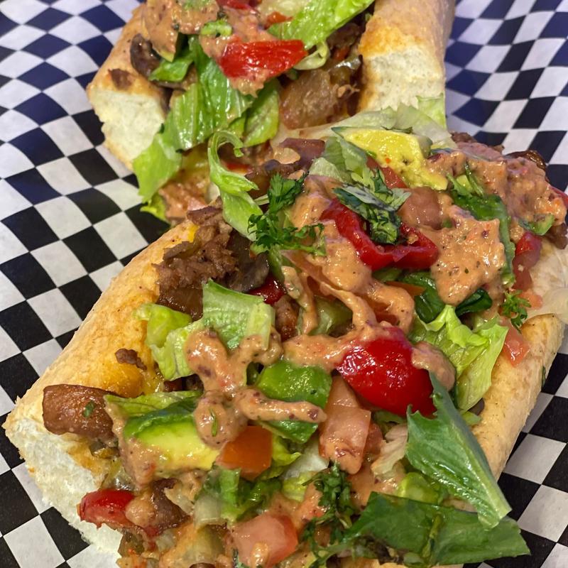 Plant-based meat, peppers, mushrooms, garlic marinara, lettuce, tomato, avocado, vegan cheese, roasted jalapeno red bean mustard | Cooked Separately from All Other Meats